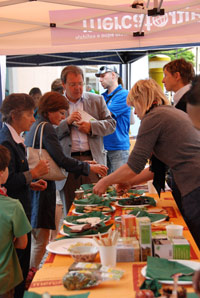 Die zahlreichen Besucherinnen und Besucher informierten sich bei den Ständen des Bioland Verbandes Südtirol und der Biobeef-Bauern über die Vorzüge der biologischen Landwirtschaft. Wissen über Biolandbau war beim Millionenquiz gefragt, wo sich auch Brixens Bürgermeister Albert Pürgstaller den Fragen stellte; dank der Mithilfe von Juliane Gasser Pellegrini, Direktorin der Fachschule Salern, konnte er einen Geschenkkorb - natürlich mit biologischen Produkten - gewinnen. Einen besonderen Anziehungspunkt stellte das Frühstück mit biologisch erzeugten und fair gehandelten Lebensmitteln aus dem Weltladen dar.