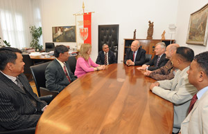 Ein Höhepunkt des rund zehntägigen Aufenthalts der nepalesischen Delegation war das Zusammentreffen mit Landeshauptmann Luis Durnwalder, oberster Zivilschützer des Lande, in dessen Büro im Palais Widmann. "Wir können auf ein großes Know-how im Zivilschutz zurückgreifen, das wir auf diese Weise weitergeben können", betonte Landeshauptmann Luis Durnwalder. "Die Unterstützung der Nepalesen im Feuerwehrwesen ist gut investiertes Geld, das nicht nur den Touristen, sondern vor allem der lokalen Bevölkerung zugute kommt."