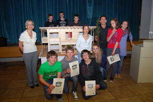 LPA - In Anwesenheit von Ressortdirektor Flavio Ruffini und KlimaHaus Agentur Direktor Norbert Lantschner wurde gestern (24. Mai) in Sterzing der Abschluss des Projektes „Wir bauen ein KlimaHaus“ gefeiert. Für ihr maßstabgetreues KlimaHaus-Modell erhielten die Schüler der Sterzinger Mittelschule "Vigil Raber" die KlimaHaus-Gold-Plakette überreicht.
