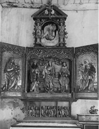 Auch die Herkunft des Altares wurde im Zusammenhang mit der Rückführung wieder beleuchtet. "Der Altar stammt angeblich aus Graubünden und dürfte schon im Zuge der Reformation in den Oberen Vinschgau gelangt sein. Sicher war er ein Hoch- und nicht ein Seitenaltar", ist der Landeskonservator überzeugt. Enstanden ist der Altar im Jahr 1514, wovon die entsprechende Jahreszahl an der Rückseite zeugt. Die Malereien an der Rückseite des Altars und an den Flügeln stammen - so der Landeskonservator - vom Maler Hans Goldschmid, der in der Strigel-Werkstatt in Memmingen tätig war. Er erinnerte heute auch daran, dass Flügel anlässlich der Landesausstellung "ca. 1500" im Jahr 2000 restauriert wurden.