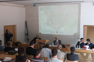 Im Anschluss diskutierten die Direktoren der Landesabteilungen Tiefbau, Valentino Pagani, Straßenbau, Paolo Montagner, Hochbau, Maurizio Patat und der Direktor des Landesamtes für Infrastrukturen, Marco Springhetti, mit den anwesenden Bezirks- und Gemeindevertretern die Bauvorhaben in den einzelnen Gemeinden des Vinschgaus. "Neben der Anbindung an das Breitbandnetz hat für den Bezirk Vinschgau vor allem der rasche Bau der Umfahrung Kastelbell-Tschars Priorität", betonte Bezirkspräsident Andreas Tappeiner.