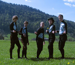 HMBC haben österreichweit aufhorchen lassen: Mit „Vo Mello bis ge Schoppernou“ haben sie es auf Platz zwei der Austria Top 40 der Ö3-Charts geschafft. Mit dem konventionellen Instrumentarium einer „Mini-Bigband“ zaubern die fünf Musiker aus dem Bregenzerwald ein Repertoire hervor, das von (schräger) Volksmusik bis „holstuonarisch“ arrangierten Stücken aus der Pop- und Rockmusik reicht.