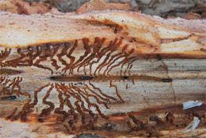 Dieser Käfer, der zur Familie der Borkenkäfer zählt, ist in den Südtiroler Wäldern zu Hause. Das Insekt bohrt Gänge unter die Rinde und unterbricht damit den Pflanzensaftfluss. Starker Befall kann zum Absterben der Bäume führen.