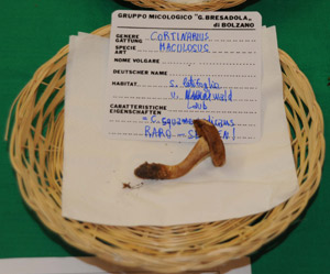 LPA - Das erste Exemplar der seltenen Spezies Cortinarius maculosus auf Südtiroler Boden haben Mitglieder des mykologischen Vereins Bresadola in der Nähe von Montiggl aufgespürt. Der Pilz kann noch bis Montagmittag bei der Pilzeausstellung im Naturmuseum in Bozen begutachtet werden.