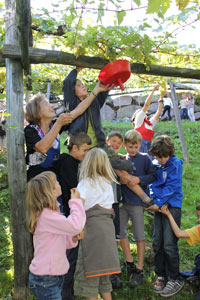 LPA - Zur festlichen Weinlese bei der größten und wohl auch ältesten Rebe der Welt, der "Versoaln", wurde heute (29. September) beim Schloss Katzenzungen in Prissian geladen: Unter der Federführung des Heimatpflegevereins Tisens und mit Hilfe der Gärten von Schloss Trauttmansdorff und des Versuchszentrums Laimburg wurde gewimmt, verkostet und gefeiert.