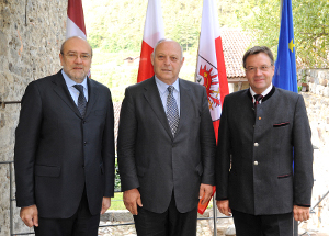 Genau einen Monat nach der Eintragung in das EU-Register haben sich heute (13. Oktober) die Organe des Europäischen Verbunds territorialer Zusammenarbeit (EVTZ) "Euregio Tirol-Südtirol-Trentino" auf Schloss Tirol zu ihrer ersten Sitzung getroffen. "Früher haben wir solo gesungen, nun sind wir zum Chor geworden und mit dem EVTZ verfügen wir auch über einen Lautsprecher", so Landeshauptmann Luis Durnwalder.