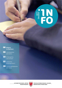 Die Oktober-Ausgabe steht ganz im Zeichen von Zahlen und Fakten zur deutschsprachigen Bildungswelt. Sie enthält statistische Daten zu Kindergarten und Schule, zur Klassen- und Schüleranzahl, zu den pädagogischen Fachkräften, Lehrpersonen und Führungskräften. Ganz aktuell sind die Ober- und Berufsschulen mit ihren neuen Bezeichnungen und die Adressen sämtlicher Kindergärten und Schulen aufgelistet. An wen man sich am Deutschen Bildungsressort wenden kann, zeigt der Überblick zu den Mitarbeiterinnen und Mitarbeitern des Ressorts mit Schulamt, dem Bereich Berufsbildung und dem Bereich Innovation und Beratung (früher Pädagogisches Institut). Eine Übersicht zu den Schülerwettbewerben und Veranstaltungstipps runden das Oktober-Heft ab.