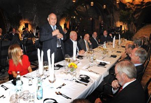 Rund 70 Gäste waren heute Abend am Rande des in Bozen stattfindenden deutsch-italienischen Businessforums der Einladung von Landeshauptmann Durnwalder in den Felsenkeller der Laimburg gefolgt - neben Marcegaglia und Keitel auch der deutsche Staatsminister Werner Hoyer sowie eine ganze Reihe hochkarätiger Unternehmer aus Italien und Deutschland. In seiner Begrüßung hob Durnwalder hervor, welche Bedeutung die Autonomie für die Südtiroler Entwicklung gespielt habe und immer noch spiele. "Sie ist der Garant unseres Wohlstands, sorgt dafür, dass Entscheidungen nahe am Bürger getroffen werden, und die Bürger die Verantwortung dafür klar zuweisen können", so der Landeshauptmann.