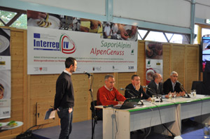 Landesrat Hans Berger freut sich, dass mit dem Projekt SaporiAlpini -AlpenGenuss konkrete Maßnahmen zur Zusammenarbeit zwischen Landwirtschaft, Tourismus und Handel gesetzt werden. Die Südtirol-Delegation bot bei der Fachmesse traditionelle Südtiroler Spezialitäten an: Lammschinken vom Villnösser Brillenschaft und Törtchen vom Ahrntaler Graukäse waren im Rahmen eines Kooperationsprojektes entwickelt worden.