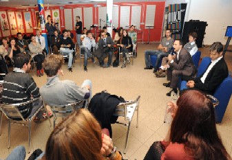 LPA - Ein Strichcode mit einigen verbogenen Stäben: Dieses Sinnbild des Projektes LiberaMente, betonte Landesrat Tommasini, verdeutlicht das Motto, mit dem junge Menschen aufgerufen werden, "die Norm zu durchbrechen und die Zukunft zu gestalten". Tommasini hat den Jugendlichen aus aller Welt bei der Eröffnungsfeier des International Youth Meetings gstern (27. Oktober) den Auftrag mit auf den Weg gegeben, gemeinsam die Zukunft zu gestalten.