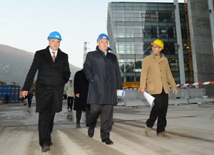 In Bozen Süd wird derzeit die neue Müllverbrennungsanlage gebaut, die ab Ende 2013 den gesamten Restmüll Südtirols verwerten, aber auch Strom und Wärme erzeugen soll. Landeshauptmann Luis Durnwalder und Bautenlandesrat Florian Mussner haben sich heute (2. November) gemeinsam mit dem Bozner Bürgermeister Luigi Spagnolli ein Bild von den Bauarbeiten gemacht, die Baufortschritte gelobt, aber auch offene Finanzierungsfragen angesprochen.