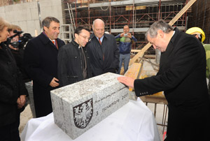 LPA - LH Luis Durnwalder, Bautenlandesrat Florian Mussner und Schullandesrat Christian Tommasini nahmen heute (3. November) die feierliche Grundsteinlegung für den neuen Sitz des italienischen Humanistischen Gymnasiums "Giosuè Carducci" in Bozen vor.