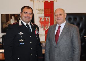 Heute (15. November) kam der neue Befehlshaber an der Spitze des regionalen Carabinieri-Kommandos in Leifers zum Antrittsbesuch in das Palais Widmann in Bozen, wo er von LH Luis Durnwalder empfangen wurde.