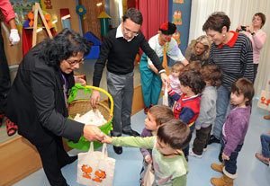 Bevor Landesrat Christian Tommasini gemeinsam mit Schulamtsleiterin Nicoletta Minnei heute die DVDs an die Kinder des Kindergartens "La Fiaba" verteilte, kamen diese in den Genuss eines Sprach-Spektakels der Clowns Karamela e Schokola. "Mit dieser Initiative möchte die italienische Landeskulturabteilung den Familien und Kindern eine weitere Möglichkeit geben, mit Sprachen in Kontakt zu kommen, um Spracherwerb nicht nur in der Schule, sondern auch in der Freizeit zu fördern", erklärte Landesrat Christian Tommasini. "Alle - Schule, Eltern, Verwaltung - müssen ihren Beitrag leisten, um das sprachliche Angebot zu verstärken und unsere Kinder mehrsprachig zu erziehen."