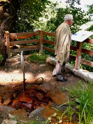 Die zur Verkostung des Mineralwassers einladende Ruheoase wurde Opfer eines Vandalenakts: Das charakteristische Hinweisschild wurde abgerissen, die Brunnenplatte mit Erdreich überschüttet, Holz und Geäst sowie Sperrmüll wurden am Bächlein abgelagert.