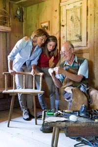 Der dritte Aktionstag, der im Frühjahr für Schulklassen angeboten wird, trägt den Titel "Altes Handwerk": An verschiedenen Stellen im Museum zeigen Handwerker ihre Arbeit: Wolle spinnen, Spitzen klöppeln, Getreide mahlen, Sägen, Besen binden und Wolle schlagen. Während der Führung besucht die Klasse die einzelnen Handwerkstationen und erhält Informationen zu Arbeit und Technik. Aus personellen Gründen können sich im angebotenen Handwerksprogramm Änderungen ergeben. Die Termine sind der 3. und der 8. Mai.