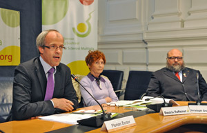 "Es handelt es sich um eine heimtückische Krankheit, die schwer erkenn- und diagnostizierbar und zudem bisher nicht heilbar ist. Es muss daher alles daran gesetzt werden, durch die gute Kooperation von Patient, Pflegenden, Ärzten und Physiotherapeuten die beste erreichbare Lebensqualität für die Betroffenen zu gewährleisten", unterstrich Ressortdirektor Florian Zerzer, der in Vertretung von Gesundheitslandesrat Richard Theiner an der Pressekonferenz teilnahm. Auch die medizinische Forschung rund um MS, die sich derzeit vor allem auf die Neuroimmunologie konzentriere, müsse weiter vorangetrieben werden.