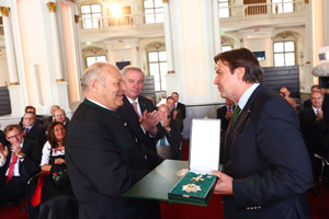 LPA - Landeshauptmann Luis Durnwalder wurde heute (20. April) in Graz vom steirischen Landeshauptmann Franz Voves und seinem Stellvertreter Hermann Schützenhöfer mit dem "Großen Goldenen Ehrenzeichen des Landes Steiermark mit Stern" ausgezeichnet. Es handelt sich um die höchste Auszeichnung des Landes Steiermark.