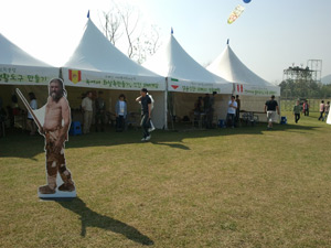 Die Stadt Jeongok liegt zwei Stunden entfernt nördlich von Seoul unmittelbar an der Grenze zu Nordkorea. Das Gelände, auf der die International Heritage Education Expo stattfindet, grenzt unmittelbar an das im vergangenen Jahr eröffnete Jeongok Prehistoric Museum – ein Gebäude, das durch seine futuristische Architektur auffällt und die Entwicklungsgeschichte der Menschheit im südasiatischen Raum auf sehr moderne Art und Weise aufzeigt.