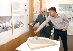Beim Projekt von Höller und Klotzner, einem kompakten Bau mit Titan-Zinkblech-Fassade, lobte die Jury heute dagegen, dass es sich um einen sehr homogenen, in sich geschlossenen Baukörper handle, der sich gut in die Landschaft füge. Allerdings sei die Panoramaterrasse nicht gelöst und die vorgesehenen unterirdischen Räume werfen Fragen auf: "Sie sind weder finanziell, noch zeitlich machbar", so March, der daran erinnert, dass die sich der finanzielle Rahmen für alle drei Hütten bei Kosten von je rund zwei Millionen Euro bewege.