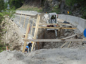 Bei einem gemeinsamen Lokalaugenschein von Landesressortdirektor Architekt Josef March mit dem für die Timmelsjochstraße zuständigen Straßendienst Burggrafenamt wurde der Verlauf der Arbeiten begutachtet. "Der Ausbau der vierten Kehre oberhalb von Moos verläuft planmäßig, die Arbeiten werden gemäß Bauzeitenprogramm durchgeführt, und man kann schon die neue Trassenführung erkennen", zeigt sich Ressortdirektor March mit dem Verlauf der Arbeiten zufrieden; diese werden von ortsansässigen Unternehmen ausgeführt. Die betreffende Kehre ist der am schlechtesten ausgebaute Abschnitt im Berreich zwischen Moos und der Kreuzung nach Rabenstein. Für Busse und Lastkraftwagen sowie für den Begegnungsfall zweier Fahrzeuge wird damit die Befahrbarkeit deutlich verbessert.