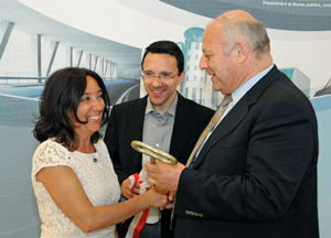 LPA - Mit der Überreichung eines symbolischen, goldenen Schlüssels an die Direktorin erfolgte heute (31. Mai) die offizielle Übergabe der neuen, erweiterten Turnhalle des italienischen Schulzentrums "Falcone e Borsellino" und der Berufsschule "E.Mattei" in Brixen durch Landeshauptmann Luis Durnwalder und Schullandesrat Christian Tommasini.