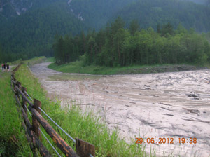 LPA - Heftige Gewitter mit Hagelschlag haben am Freitag (29. Juni) zu Murabgängen im Bereich des Sarlmassivs im Oberpustertal geführt; neben den Freiwilligen Feuerwehren war auch der Techniker der Wildbachverbauung Martin Moser beratend vor Ort.