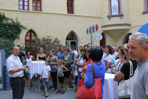 "Das, was uns verbindet," unterstrich der Direktor der Gärten von Schloss Trauttmansdorff Daniel Bedin, "ist ein ständiges Streben nach Qualität und Verbesserung in allen Bereichen." Dies sei auch den Bäuerinnen und Bauern bewusst, die damit ihren Gästen mit gutem Gewissen einen Besuch in den Gärten von Trauttmansdorff empfehlen können. An den Rundgang schloss sich ein Umtrunk im Innenhof von Schloss Trauttmansdorff an.