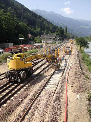 Während der derzeitigen zweiwöchigen Unterbrechung des Bahnbetriebes auf der Strecke Meran – Latsch wird auf Hochtouren rund um die Uhr gearbeitet, damit die Vinschger Bahnlinie samt aller Signal- und Sicherheitsanlagen wie geplant ab 16. Juli wieder vollständig in Betrieb gehen kann.