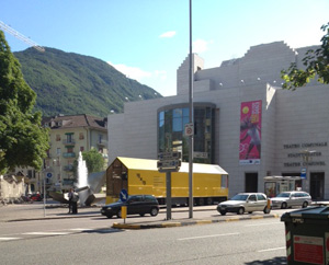 Mit einem mobilen Museumscontainer wirbt das Land derzeit für die gemeinsame Bewerbung Südtirols mit Venedig und den Ländern im Nordosten Italiens um den Titel einer Europäischen Kulturhauptstadt 2019. Gestern Abend (16. Juli) hat der gelbe Container vor dem Bozner Stadttheater Quartier bezogen. Anlass dafür ist das Festival "Tanz Bozen".