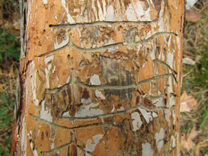 LPA - Verfärbte oder abgestorbene Kiefern an den Sonnenhängen im Vinschgau, vor allem zwischen Latsch und Spondinig: "Der übliche Verdächtige Kiefernprozessionsspinner ist daran unschuldig", heißt es aus dem Forstinspektorat Schlanders. Die Schwarzkiefer (Pinus nigra), auch Schwarzföhre genannt, ist nämlich derzeit vom "Kleinen Waldgärtner", einer Borkenkäferart, befallen.