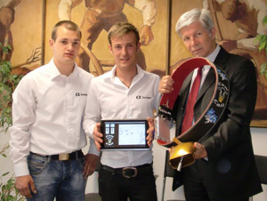 Es war ein ungewöhnliches Treffen, das der Landesrat mit Martin Monsorno und Patrick Neuhauser, der eine aus Varena (TN), der andere aus Terlan, beide aber Neo-Absolventen der technischen Oberschule "Galileo Galilei" in Bozen, und ihrem Betreuer Rinaldo Larcher hatte: "Ich habe nicht schlecht gestaunt, als mir die beiden jungen Männer das Projekt 'Cow Call' präsentiert haben", so Berger. Dieses Staunen ist durchaus nachvollziehbar, auch wenn das Produkt auf den ersten Blick eine herkömmliche Kuhglocke zu sein scheint. Allerdings nur auf den ersten Blick, denn Monsornos und Neuhausers Glocke ist ein High-Tech-Produkt. Mit einem GPS-Sender ausgestattet, übermittelt die Glocke dem Hirten etwa ständig ihre Position (und damit jene der Kuh). Gleichzeitig wird der Hirt per SMS gewarnt, wenn ein Tier ein vorgegebenes Areal verlässt.