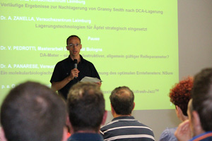 LPA - Zur diesjährigen Lagerungstagung haben sich heute (8. August) im Vortragssaal des Versuchszentrums Laimburg 80 Teilnehmende eingefunden. Lagerungsexperten stellten ihnen die Ergebnisse neuer Methoden zur Messung des Reifefensters und der Qualität der Früchte vor: Erörtert wurden Probleme aus der Praxis wie etwa der Nachlagerung von Früchten.