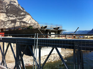 LPA - Die Arbeiten an der neuen Brücke über die Etsch und über die Autobahn entlang der Landesstraße 21 in Salurn sind nun fast abgeschlossen. Ab Dienstag, 14. August, ist die neue Brücke mit Einschränkungen befahrbar. Bis auf Weiteres bleibt aber auch die vom Landesstraßendienst errichtete Bailey-Brücke noch in Betrieb.