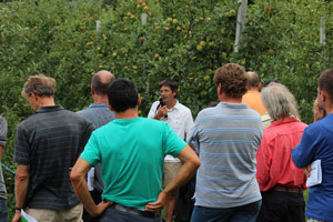 Eine gute Qualität der Äpfel hängt wesentlich davon ab, dass der einzelne Baum nicht zu viele Früchte trägt. Neben einem natürlichen Fruchtfall durch die Pflanzen selbst versucht man daher, den Fruchtfall gezielt zu verstärken, um eine optimale Anzahl von Früchten je Baum und damit eine hohe Qualität zu gewährleisten. Im biologischen Anbau sind seit längerer Zeit Versuche mit öligen Substanzen durchgeführt worden, welche die Photosynthese der Pflanzen eingeschränkt und dadurch den natürlichen Fruchtfall verstärkt haben. In weiteren Versuchen ist nun erforscht worden, ob die öligen Substanzen allein den Fruchtfall verstärken oder ob weitere Faktoren wie etwa Hagelnetze mitverantwortlich für diesen Effekt sind. Aktuelle Auswertungen zeigen im Vergleich zu unbedeckten und unbehandelten Pflanzen, dass sowohl die Hagelnetze als auch die Behandlungen mit Spritzmitteln den Fruchtfall verstärken.