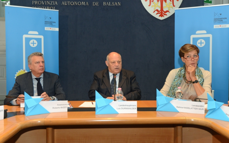 Drei Wochen noch, dann findet in Bozen das erste "Innovation Festival" statt. Vom 27. bis 29. September, wird die Landeshauptstadt zum Schaufenster für innovative Produkte und Ideen. Heute (6. September) haben Landeshauptmann Luis Durnwalder sowie die Landesräte Roberto Bizzo und Sabina Kasslatter Mur das Programm vorgestellt: mit 14 Standorten, 50 Events und 100 Rednern.