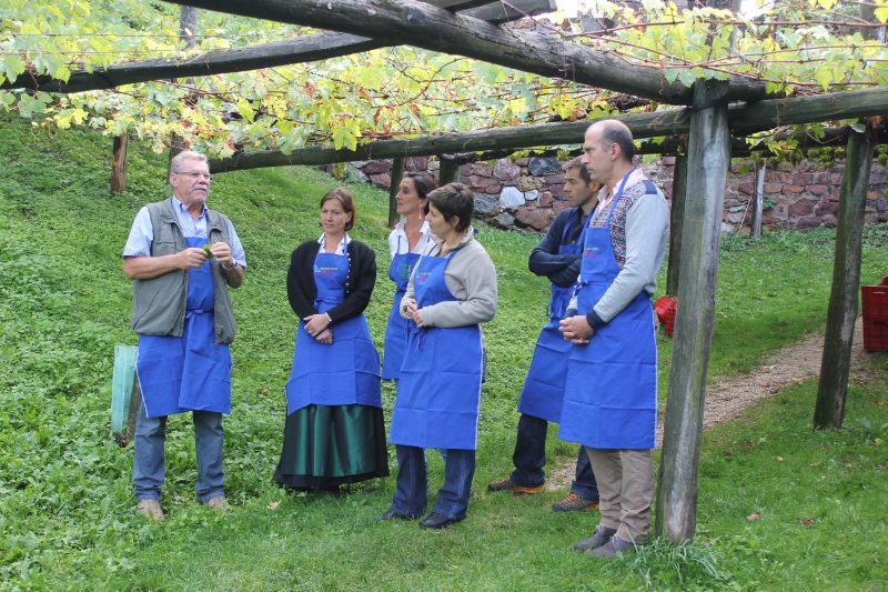 Seitdem wird aus den Versoaln-Trauben in der Landesweingut Laimburg ein begehrter Wein gekeltert. "Diese besondere Rebe, die sogar die Reblaus im vorigen Jahrhundert bis heute überlebt hat, ist heute leider vom Eska-Pilz befallen, dem bereits 50 Quadratemeter ihrer Fläche zum Opfer gefallen sind. Deswegen ist es für uns wesentlich, dieses Wunder der Natur mit allen verfügbaren Mitteln zu erhalten", betont Klaus Platter, Önologe und ehemaliger Direktor des Landesweinguts Laimburg und der Gärten von Schloss Trauttmansdorff. Aus den Trauben, die heute gelesen wurden, werden jährlich zusammen mit den Trauben der umliegenden 120 Jahre alten Reben etwa 300 Flaschen Wein in limitierter Auflage produziert, die man unter anderem im Rahmen der "Gärten & Wein"-Führung verkosten und kaufen kann.