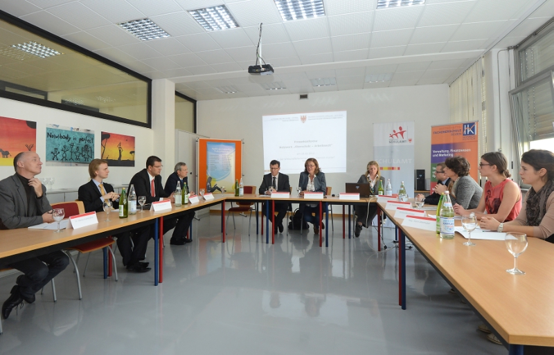Ihre Erfahrungen in einer Übungsfirma stellte die Schülerin Verena Reichhalter vor und wies auf die Bedeutung des Mottos "Learning by doing" hin. Handelskammer-Präsident Michl Ebner hob die Wichtigkeit der Zusammenarbeit zwischen Schule und Wirtschaft hervor und gab der Hoffnung Ausdruck, dass ausgebaut werde, was aufgebaut wurde. Wirtschaftsring-Präsident Hansi Pichler dankte für die Investition in das Humankapital, das nur durch diese Zusammenarbeit gelinge. Petra Priller von der Caritas-Schuldnerberatung nannte das Projekt "Finanzführerschein" für einen bewussten Umgang mit Geld als gelungenes Beispiel dieser Vernetzung. Barbara Pobitzer, Direktorin der Wirtschaftsfachoberschule "Heinrich Kunter", legte dar, dass 40 Prozent ihrer Absolventinnen und Absolventen direkt in die Arbeitswelt einsteigen und es daher ein Muss sei, die Nachwuchskräfte in praxisorientiertem Unterricht vorzubereiten.