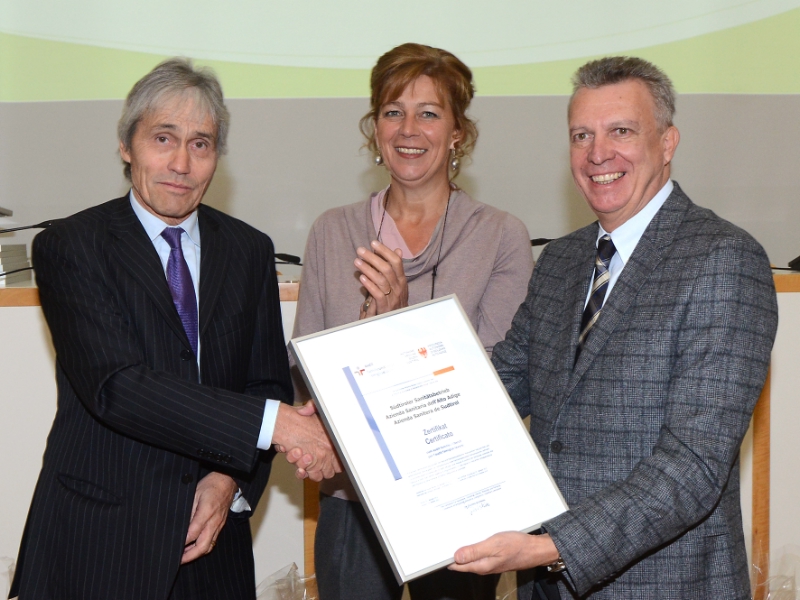 Für ihre familienfreundlichen Maßnahmen verliehen ihnen heute im Bozner Palais Widmann Landesrätin Sabina Kasslatter Mur und Landesrat Roberto Bizzo sowie Handelskammerpräsident Michl Ebner das Zertifikat "audit familieundberuf".