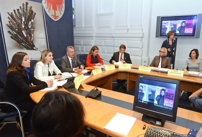 Ulrike Oberhammer, Präsidentin des Landesbeirates für Chancengleichheit, stellte die Plakat-Kampagne mit einem Foto von Brigitte Niedermair vor; auch die nächste Ausgabe der Frauenzeitschrift "ëres - frauen info donne" zeigt dieses Bild auf der Titelseite. Zudem sollen weiße Schleifen, die bereits an männliche Entscheidungsträger im Lande verschickt wurden, darauf hinweisen, dass es auch Aufgabe der Gesellschaft ist, aufzudecken und einzuschreiten. Ihre Stellvertreterin Franca Toffol wies darauf hin, dass der Mangel an Respekt gegen Frauen bereits im Kindergarten beginnt und eine Frage der Kultur sei; Italien sei diesbezüglich und auch in der Rechtssprechung sehr rückständig. Am Tag der Gewalt gegen Frauen wird in Bozen ein Stadtlauf ausgetragen.