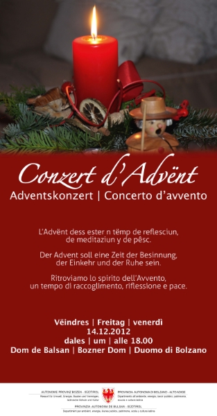 Ladinische Kultur: Adventskonzert am 14. Dezember im Dom zu Bozen