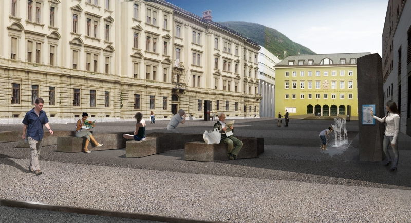 Obwohl alle Projekte durch die Überarbeitung noch wesentlich verbessert wurden, fiel die Wahl schließlich auf das sehr konsequent formulierte Projekt von Fierro und Saul. Der neue Platz soll durch den homogenen Belag und skulptural geformte Sitzmöbel und Totems aus Porphyr jene Würde erhalten, die seinem Namen entspricht, erklärt Landesressortdirektor Josef March.