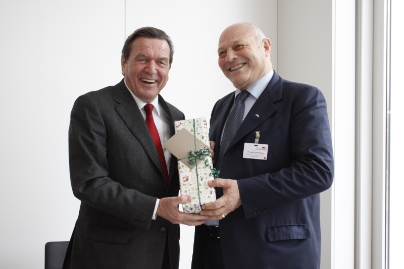 Schröder und Durnwalder haben sich heute in Frankfurt zu einem gemeinsamen Mittagessen getroffen. Im Gespräch ging es vor allem um die aktuelle politische Situation in Italien und die Entwicklungen in Südtirol. "Dem Ex-Kanzler ist die prekäre Lage Italiens natürlich bewusst und ich habe ihm versichert, dass wir - auch wenn wir schuldenfrei und damit eigentlich nicht Teil des Problems sind - unseren Beitrag zur Sanierung des Staatshaushalts leisten werden", so Durnwalder, der Schröder aber auch über die Südtirol einseitig und in einem unverhältnismäßigen Ausmaß auferlegten Sparzwänge informiert hat. Zudem nutzte der Landeshauptmann das Gespräch, um den ehemaligen Bundeskanzler über die neuesten Entwicklungen in Südtirol auf dem Laufenden zu halten.