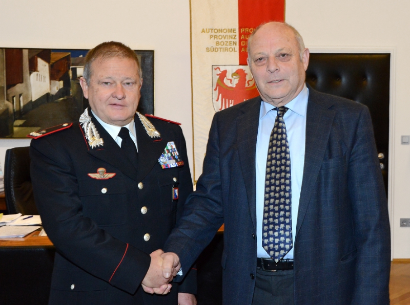 LPA - Ein Südtiroler steht seit 21. Jänner 2013 an der Spitze der Carabinieri in der Regional Trentino Südtirol. Landeshauptmann Luis Durnwalder hat heute (6. Februar) den neuen Regionalkommandanten Georg Di Pauli zu einem Antrittsbesuch empfangen.