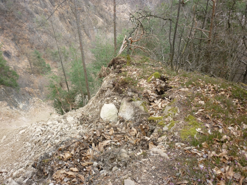 In der Nacht auf den gestrigen Mittwoch (3. April) waren zwischen den Tunnels Kardaun und Kampenn zwei große Steinblöcke auf die Eggentaler Straße gestürzt. Das Material stammt aus dem Hang westlich der Straße, wo sich in rund 300 Metern Höhe eine Erosionsfläche befindet. "Man kann sich vorstellen, dass dieses Material, das aus 300 Metern Höhe herunterstürzt, eine große Beschleunigung erfährt und somit eine große Gefahr darstellt", erklärt der Landesgeologe, "noch dazu fällt das Material durch eine Felsrinne, so dass man fast von einem Bobbahn-Effekt sprechen kann."