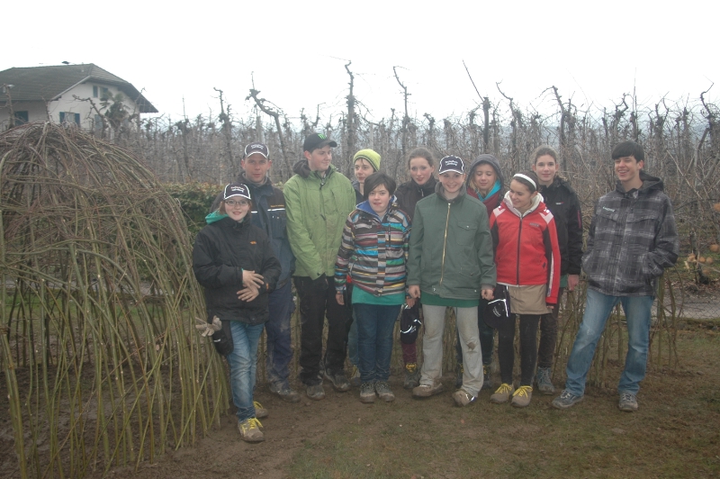 Das Flechten und das Arbeiten mit Weiden ist eine alte Technik in der Gartengestaltung, die interessant und vielseitig ist, da das verwendete Material ein variabler Bau- und Werkstoff ist. Schüler und Schülerinnen des Gartenbau- und Floristikbienniums im ersten Ausbildungsjahr haben unter Anleitung ihrer Lehrpersonen bereits im Februar mit dem Schnitt der Kopfweiden in Montiggl begonnen; die Weiden wurden von Familie Niedermayer und Familie Flor zur Verfügung gestellt. Dabei wurde besonders auf die nachhaltige Nutzung eines natürlichen Rohstoffes Wert gelegt.