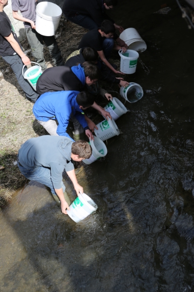 LPA - Zahlreiche Seeforellen tummeln sich seit heute (18. April) im Haidersee. Elf Schüler der Fachschule für Land- und Forstwirtschaft Fürstenburg und Mitarbeiter der Landesfischzucht des Versuchszentrums Laimburg haben die Seeforellen im Haidersee bei Graun eingesetzt. Der Besatz ist Teil eines Projekts zur Wiederbelebung der Haidersee-Forelle.