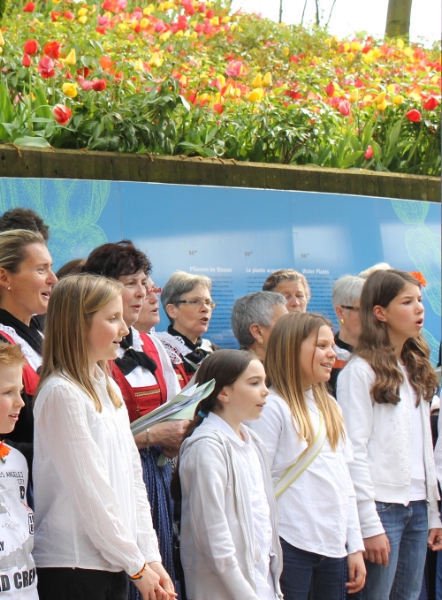 Bunt wie der Frühling in Trauttmansdorff zeigten sich die Chöre und ihr Repertoire: Frauen-, Männer-, Kinder- und Jugendchöre erfüllten Wasser- und Terrassengärten mit ihren Klängen und stimmten auf den Frühling ein. Bereits zum zehnten Mal wurde damit der "Tag der Chöre" ausgetragen; heuer beteiligten sich neun Südtiroler Chöre: der Jugendchor "Prisma", der Kinderchor "vox jubilans", der Frauenchor Algund, der Kirchenchor Untermais, der Kirchenchor Völlan, die Gaulsänger Lana, der Jugendchor „"Raindrops", der "Mandochor Ehrenburg" und der Männerchor Ulten; den klangvollen Abschluss bildete das gemeinsame Schlusslied am Seerosenteich.