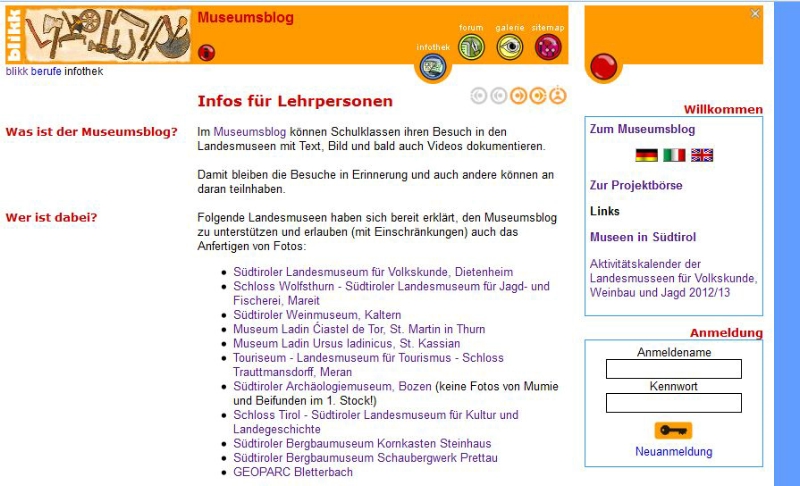 Der Museumsblog ist ein Angebot des Bildungsservers "blikk" (bildung-lernen-information-kommunikation-kooperation) in Zusammenarbeit mit der Landesabteilung Museen.