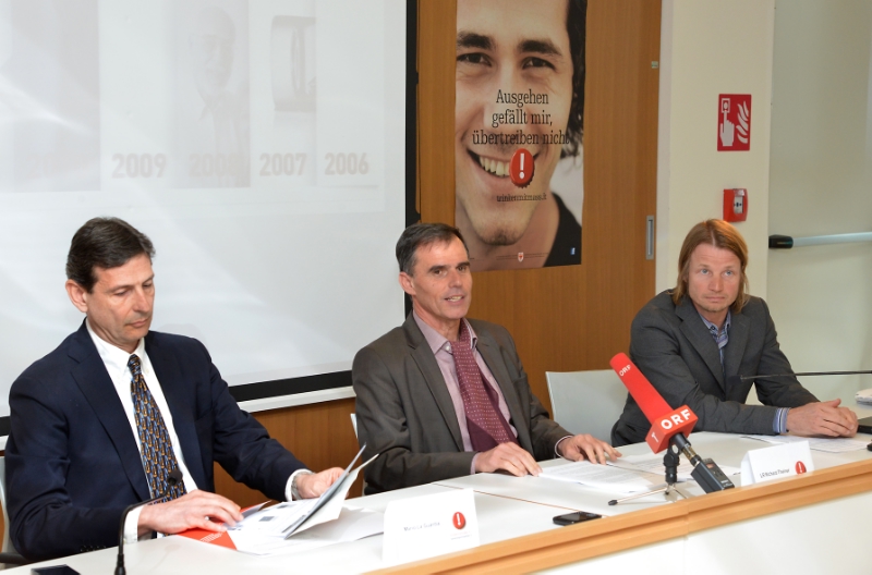 LPA - Unter dem Motto „Schlagzeile Alkohol: Warum Vorbeugung wichtig ist und wirkt“ haben Gesundheitslandesrat Landesrat Richard Theiner und Peter Koler vom Forum Prävention heute, 30. April, in Bozen die Alkoholpräventionsmaßnahmen für 2013 und aktuelle Zahlen zum Alkoholkonsum präsentiert. Mario La Guardia, Primar der Notaufnahme am Krankenhaus Bozen legte Statistiken vor. „Die Jugend ist beim Alkoholkonsum verantwortungsbewusster als sie dargestellt wird“, so Theiners Fazit.